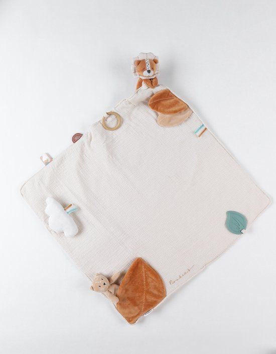 Het Babou activiteitendeken uit katoenen mousseline biedt talrijke activiteiten die de zintuigen van je baby stimuleren: verfrommeld papier, vingerpopje, zakje, gekleurde linten, gekleurde etiketten en bijtspeeltjes.Het afneembare popje zorgt voor interactie en plezier met het gezin. Praktisch, de kleine leeuw kan aan de gordel van een groep 0 autostoel vastgemaakt worden.Ideaal om je baby bezig te houden tijdens uitstapjes en het houdt je baby ook lekker warm. Opbergtas inbegrepen..