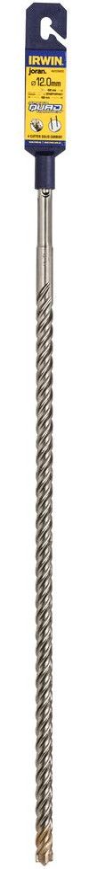 Irwin Joran SDS-plus betonboor met 4 snijvlakken. De boor heeft een diameter van 12,0 mm, is 460 mm lang en heeft een werklengte van 400 mm. De Speedhammer Quad SDS-plus betonboor is de meest krachtige betonboor van Irwin. De unieke carbidepunt is geoptimaliseerd voor snel, continu boren, zelfs door gewapend beton. SDS-plus boren passen op een boorhamer of combihamer met een SDS-plus boorkop. SDS-plus boren hebben een schacht van 10 mm met twee sleuven. Hierdoor kunnen ze niet slippen in de boorkop.
