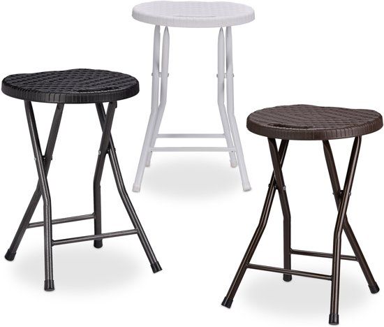 Relaxdays - inklapbare kruk BASTIAN - opvouwbaar - rotan - tuin - balkon - rond - Spotbehandelingen