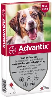 Bekijk productBayer Advantix Vlooien & Teken Pipetten - Hond 10-25 kg - 4 stuks - Sprays tegen vlooien en teken