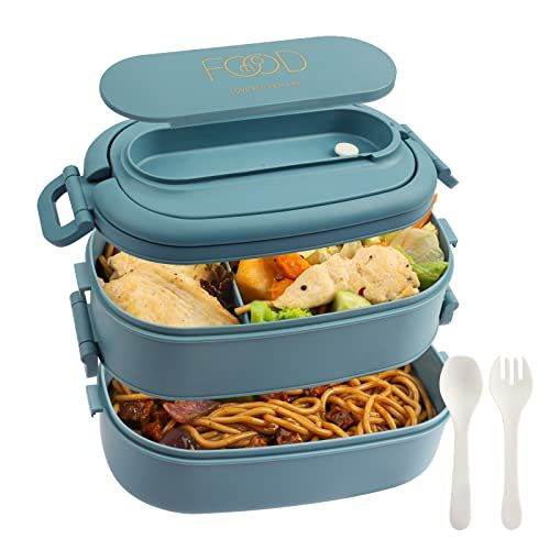 OITUGG Lunchbox voor volwassenen: 2-laags bento box 1550 ml - Lichtblauw - Spruitjes