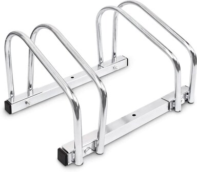 Relaxdays Dubbel fietsenrek 2 fietsen - Fietsenstandaard, fietsenstalling - Verchroomd rek