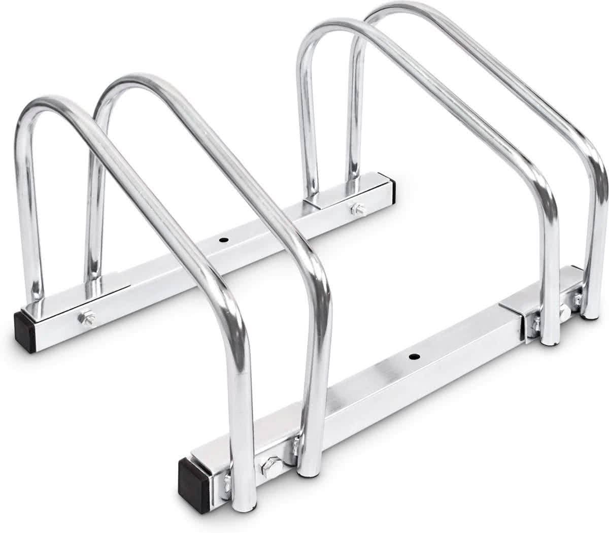 Relaxdays Dubbel fietsenrek 2 fietsen - Fietsenstandaard, fietsenstalling - Verchroomd rek - Stadsfietsen