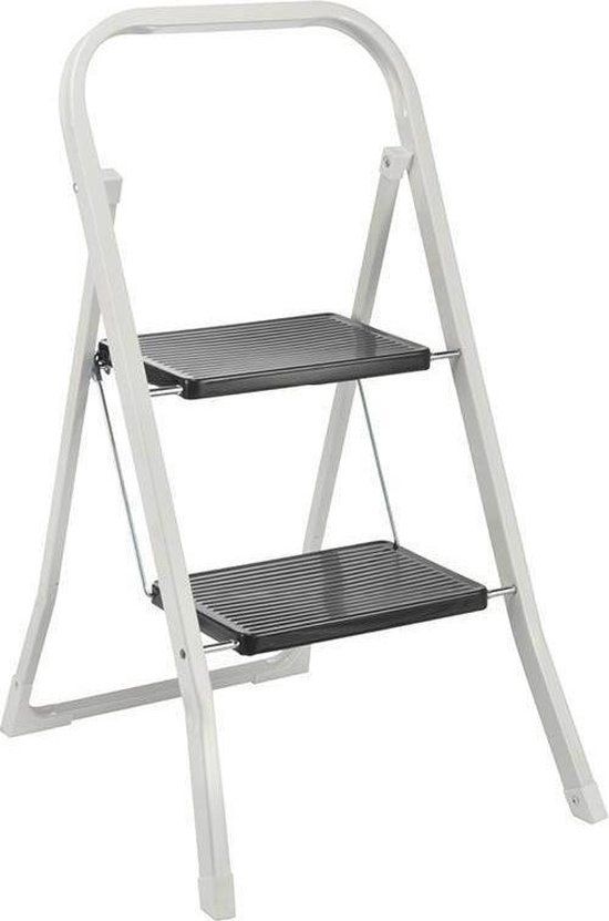 Bekijk productRelaxwonen Huishoudtrapje - keukentrap met 2 treden - Wit met Zwart - Gelakt staal - Standaard barkrukken