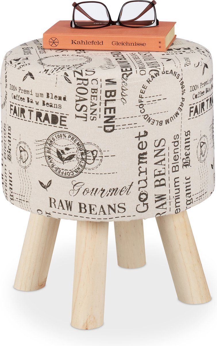 Relaxdays rond krukje - stoffen hocker - voor kaptafel - voetenbank - zitkruk - slaapkamer - Standaard barkrukken