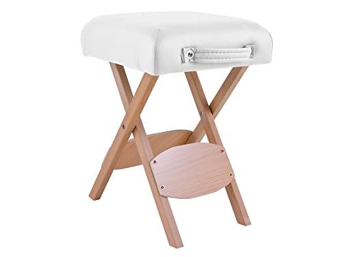 QUIRUMED Opvouwbare kruk van hout met gevoerde zitting, wit - Standaard barkrukken