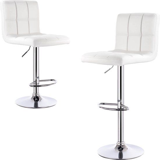 Witte Barkruk met Rugleuning - Kunstleer - Draaibaar & In hoogte verstelbaar - Standaard barkrukken