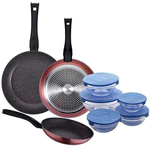 San Ignacio Pannenset - 3 pannen (Ø 20/24/28 cm) + 5 ballen met blauw deksel - Standaard koekenpannen
