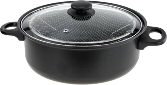 Excellent Houseware Frituurpan met glazen deksel - 26 cm - Zwart - Standaard koekenpannen