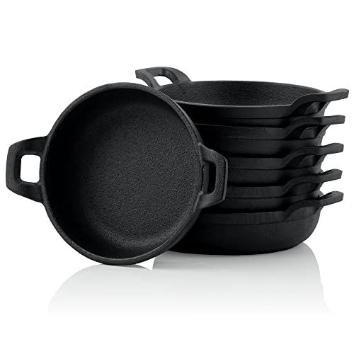 bbq-toro Gietijzeren grillpannetjes (set van 6) | Ø 13 cm | reeds ingebrand - preseasoned | gietijzeren grillpannen, serveerpan, grillpan, gietijzeren pan