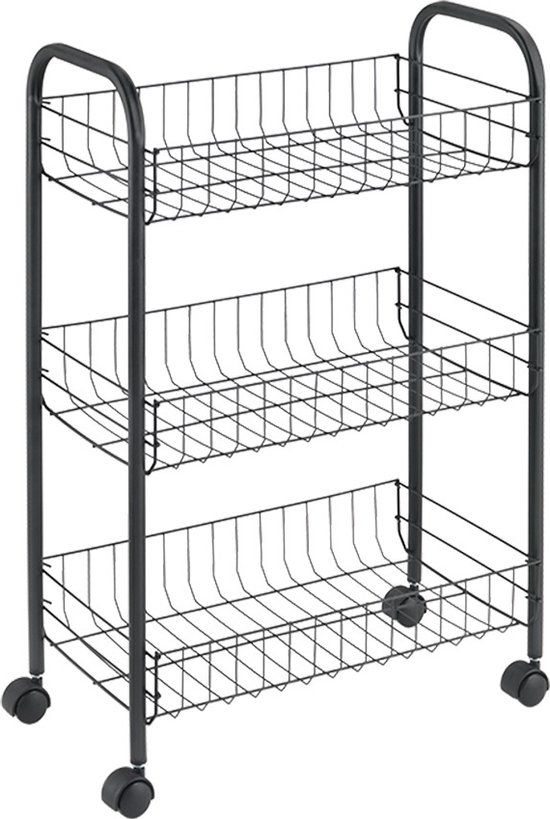Metaltex Lugano Keukentrolley - Zwart - 3 Manden - 63x41x23cm