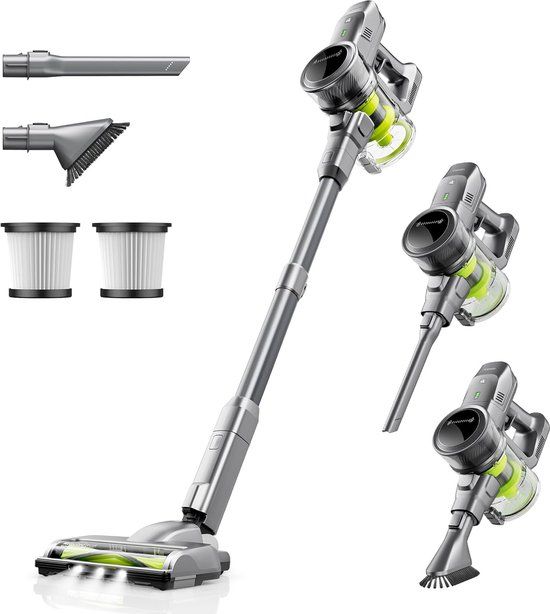 De Kalado draadloze steelstofzuiger is een veelzijdige en krachtige schoonmaakoplossing voor elk huishouden. Met een lichtgewicht ontwerp en zelfdragende functionaliteit is deze stofzuiger eenvoudig te verplaatsen en op te bergen. De krachtige 80.000 RPM BLDC borstelloze motor biedt drie standen: laag (12KPa/40 min), medium (18KPa/20 min) en hoog (26KPa/14 min), waardoor hij geschikt is voor diverse schoonmaakklussen. De verwijderbare en oplaadbare batterij zorgt voor langdurig gebruik en extra accu's kunnen worden aangeschaft voor nog langere gebruiksduur. Het 5-laags filtersysteem van deze stofzuiger vangt 100% van de fijne deeltjes (grootte >0,1μm) en 95% van de ultrafijne deeltjes (grootte <0,1μm), waardoor de lucht in uw huis wordt gezuiverd en stofvervuiling wordt verminderd. Met een inhoud van 0,8 liter is de stofbak eenvoudig te legen met één klik. De Kalado stofzuiger wordt geleverd met diverse accessoires, waaronder een vloerborstel, handstofzuiger en stofborstel, waardoor hij geschikt is voor schoonmaken van vloeren, tapijten, trappen, auto's en meer. Het LED-display toont zuigkracht, vastzittende borstel- en volle stofbakalarmen, en de roterende vloerborstel met LED-licht is ideaal voor het schoonmaken in donkere ruimtes.