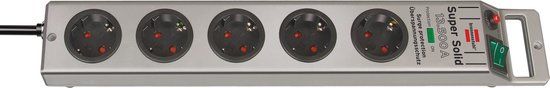 Brennenstuhl Super-Solid Stekkerdoos - 5-voudig - Zilver - 2.5 m - Met overspanningsbeveiliging - Stekkerdozen en piekspanningsbeveiliging
