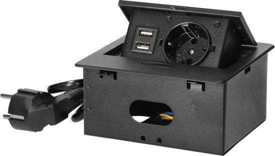 Orno Pop-up Stekkerdoos - 1 stopcontact - 2 USB A - Inbouw - Zwart - Stekkerdozen en piekspanningsbeveiliging