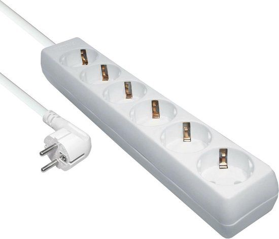 Transmedia 6-voudige stekkerdoos - wit - 10 meter - Stekkerdozen en piekspanningsbeveiliging