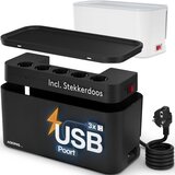 ACROPAQ Kabelbox stekkerdoos - Zwart - 5 x EU + 3 x USB - 2m snoer