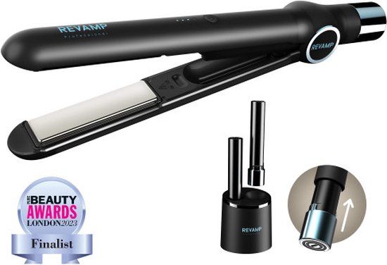 De Revamp iGen Progloss™ draadloze keramische stijltang wordt geleverd met twee lithium-ionbatterijen die slechts 3,5 uur nodig hebben om volledig op te laden. Elke batterij biedt tot 40 minuten stylingtijd. Met een vluchtveilige modus, wereldwijd voltage en een UK/EU verwisselbare adapter, is deze stijltang is het ideale reismaatje voor styling onderweg. Met variabele temperatuurinstellingen en geavanceerde intelligente warmteregulatie, biedt deze stijltang strakke stijlen en minimale haarbeschadiging.