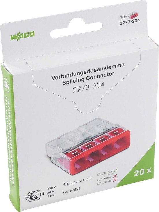 WAGO Mini lasklem 4-voudig 4x0.5-2.5mm² - 2273-204 - 20 stuks - Stootstekkers