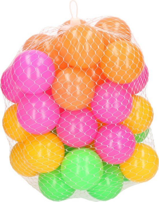 40x Ballenbak ballen neon kleuren 6 cm speelgoed. 40x ballen om een ballenbak mee te vullen, in verschillende neon kleuren. De ballenbakballen hebben een diameter van 6 cm en zijn gemaakt van hol kunststof. Het aantal per kleur kan per zak verschillen.