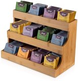 BUDDLEY Theedoos 12 vaks - Thee Organizer - Bamboe - Theehouder - Theebox - Thee organiser - Display - Rekje - Thee Houder Hout - Theedozen - Theekist - Theezak organiser - Theezakjesbox - Thee doos - 12 vakken - Rek - Kantoor - Staand