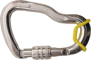 Via ferrata karabiner met snelsluiting, speciaal voor via ferrata klimmen. Geleverd met clip, om een bandslinge aan de karabiner te bevestigen zonder dat deze verdraait.