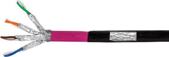 S/FTP CAT7 grondkabel stug 100M 100% koper. De kabel heeft AWG waarde 23 met een speciale UV stabiele en scheurbestendige PE mantel. Geschikt voor netwerken tot 10Gbit met een bandbreedte van 1000MHz. Wordt geleverd op rol zonder aangegoten connectoren, ideaal voor het maken van verbindingen tussen twee gebouwen of apparatuur dat buiten geplaatst is. Dankzij de 100% koperen aders is deze kabel geschikt voor het gebruik van PoE (Power over Ethernet). Een stugge kabel wordt altijd gebruikt wanneer er wordt gewerkt met wandcontactdozen, patch panels of LSA strips in het algemeen.