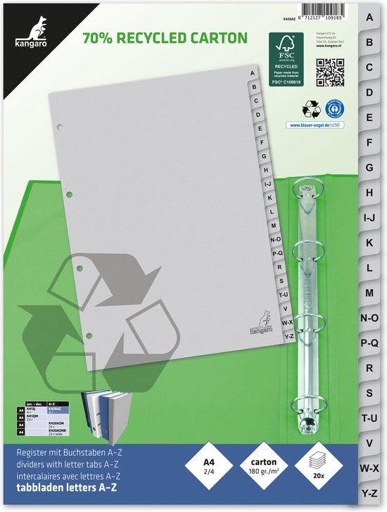 Bekijk productKangaro tabbladen - A4 - letters 20-delig - ECO karton - 23-gaats - K420AZM - Tabbladen