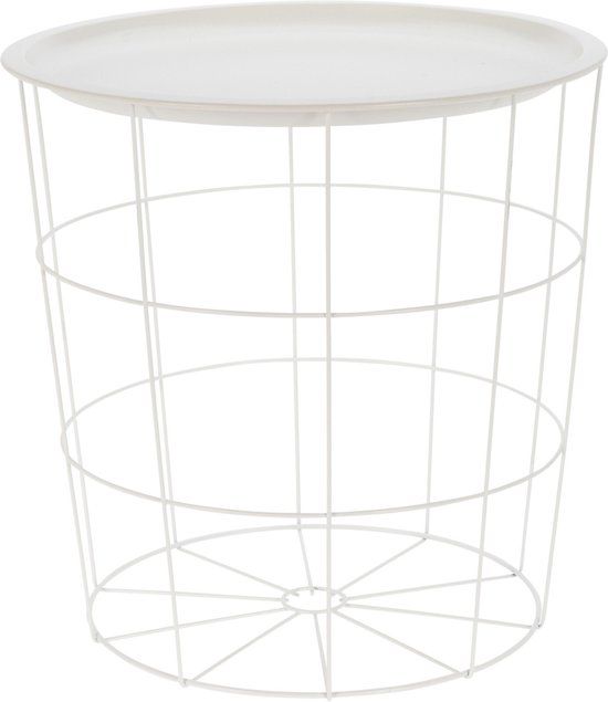 Excellent Houseware Bijzettafel - Rond - Metaal - Wit - D40 x H40 cm - Tafelbladen