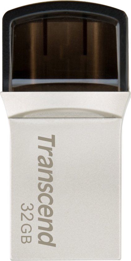 De JetFlash 890 USB 3.1 OTG flashdrive voldoet aan de nieuwe generatie USB Type-C-technologie. De flash drive heeft een dubbele connector - een omkeerbare USB Type-C-connector en een normale USB 3.1 (Gen 1) -connector * - die is ontworpen voor overdracht van foto's, muziek en video's tussen de nieuwste apparaten met USB Type-C-poort. Bovendien kun je met de gratis te downloaden Transcend Elite-app eenvoudig bestanden op de JetFlash 890 verkennen en snel een back-up maken van al je waardevolle bestanden die zijn opgeslagen op je MacBook, smartphone of tablet.\n\nDubbele USB-connector, dubbel gemak\nDankzij de USB OTG technologie (On-The-Go) combineert de JetFlash 890 een gewone USB 3.1 (Gen 1) -aansluiting en een USB Type-C-aansluiting in éém flash drive. Hierdoor kun je portable alles wat je wilt overbrengen, van kostbare foto's, muziek , video's en andere digitale bestanden tussen tablets, smartphones, Mac-computers, pc's en laptops.\n\nUSB Type-C\nHet kan een heel gedoe zijn om de goede kant van de USB-poort te krijgen, maar dit is nu niet meer het geval. Met een omkeerbaar ontwerp bespaart de USB Type-C-connector van de JetFlash 890 niet alleen de inspanningen om twee of drie keer te proberen voordat hij daadwerkelijk verbinding maakt met de USB-poort, maar ook je tijd!\n\nOngeëvenaarde overdrachtssnelheden\nUitgerust met de SuperSpeed USB 3.1 Gen 1-interface, levert de JetFlash 890 overdrachtssnelheden tot 130MB/s, wat betekent een razendsnelle toegang tot je gegevens.\n\nKrijg extra ruimte met maximaal 128GB capaciteit\nMet maximaal 128GB capaciteit en de Type-C USB OTG poort, kun je moeiteloos de opslagcapaciteit van je mobiele apparaten uitbreiden. Het bericht "Memory Full" zal je niet meer zien!\n\nFantastisch entertainment met een full-size USB\nMet de standaard USB interface kun je eenvoudig bestanden overbrengen naar alle apparaten met USB-poorten, waaronder desktops, Ultrabooks, laptops, tv's, Blu-ray-spelers, dvd-spelers, stereo's en gameconsoles.\n\nSpatwaterdicht en stofbestendig\nUsing innovative COB (Chip on Board) engineering and assembled with a metallic casing, the JetFlash 890 is completely resistant to dust and splash yet extraordinarily lightweight, bringing you to another level of durability.\n\nVrij van gegevensverlies met een eenvoudige dop\nDe dop is ontworpen om aan beide uiteinden van de JetFlash 890 te passen. Wanneer een connector bezet is, kun je de andere kant van de USB-connector afsluiten, waardoor je ervoor zorgt dat de dop zich altijd op de JetFlash 890 bevindt om de USB-connectoren te beschermen en de data.\n\nTranscend Elite-software en -applicatie\nTranscend Elite is een geavanceerde software die compatibel is met zowel Mac OS X als Windows om gegevens te beheren. Download de software gratis van onze website of Google Play voor Android-apparaten. De functies van Transcend Elite omvatten: back-up en herstel, gegevenscodering, bladwijzer-synchronisatie en cloudback-up.