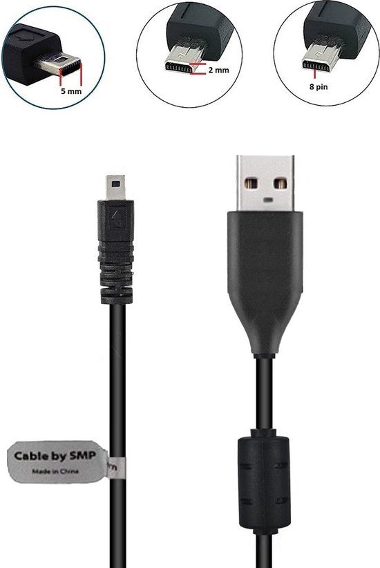 5 verschillende varianten !!! 1 JAAR GARANTIE. Let op! Uw camera beschikt over meerdere poorten, kies de juiste (niet HDMI). 8 Pin USB 2.0 kabel voor optimale veiligheid, foto's overzeten en indien uw model het toelaat is opladen via deze aansluiting mogelijk. Dit verschilt per model dus eerst de handleiding van uw toestel raadplegen.