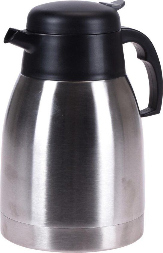 1x RVS thermoskan/isoleerkan 1500 ml. Deze dubbelwandige RVS thermoskan met lekvrije draaidop is gemakkelijk te bedienen door het handvat en de drukknop. Dankzij de goede thermische eigenschappen blijft uw koffie of thee urenlang warm.