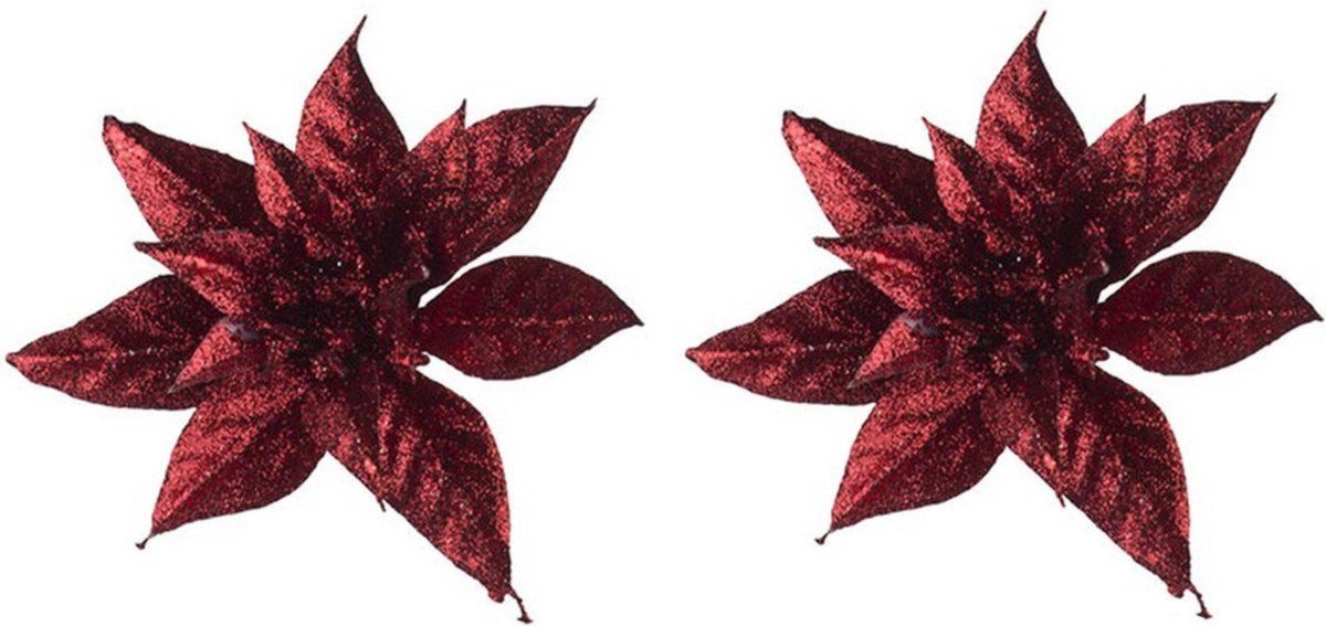Cosy&Trendy Kerstboomversiering - Bordeaux/Donkerrode Glitter Bloemen - 8 cm - 2 Stuks