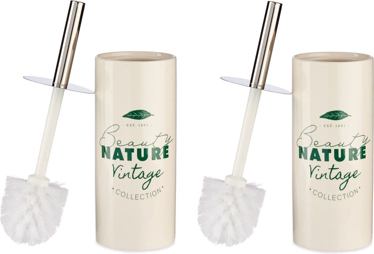 Berilo Set van 2x toiletborstel gebroken wit met tekst keramiek 31 cm - Wc-borstels - Toiletborstels