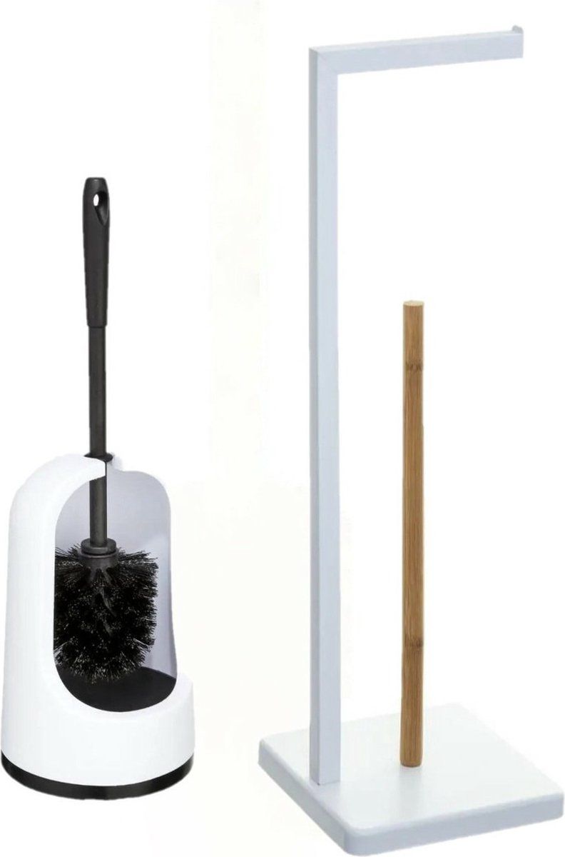5five WC-borstel/Toiletborstel met toiletrolhouder set - wit - keramiek - Toiletborstels