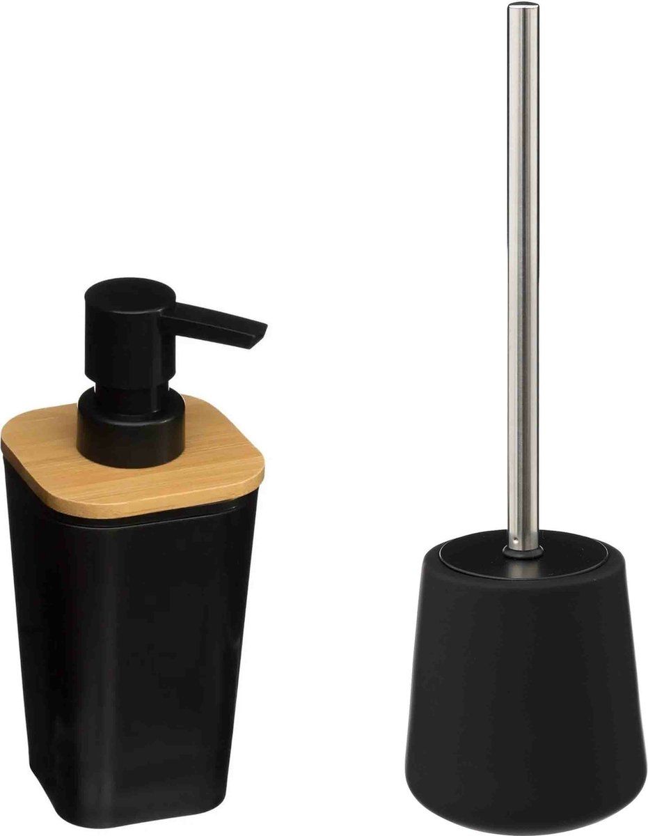 5five WC/Toiletborstel met zeeppompje 300 ml - Zwart - Keramiek - Toiletborstels