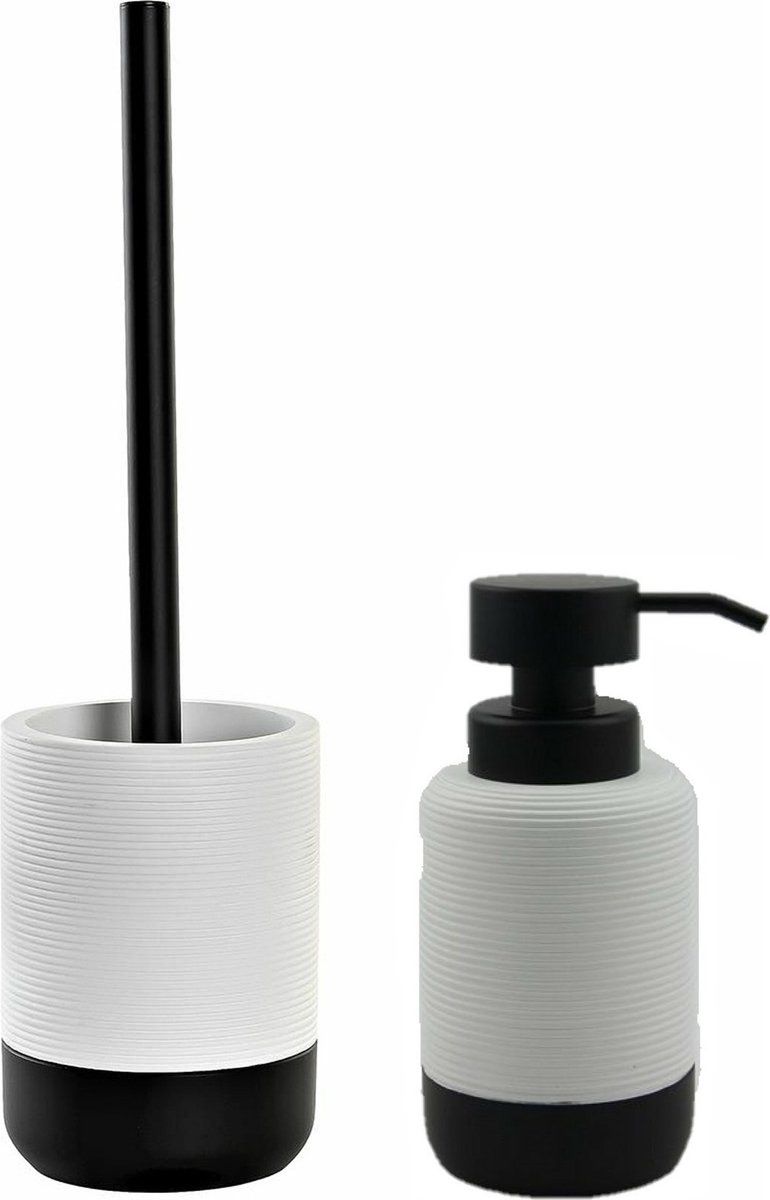 5five - WC-borstel/toiletborstel met toiletrolhouder set - zwart - keramiek