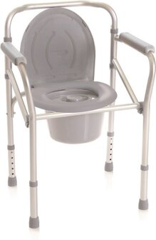 De 4-in-1 toilet- en douchestoel is opvouwbaar. Hij kan voor vier functies worden gebruikt, als toiletzitting, toiletstoel, comfortabele stoel en douchestoel. De stoel bevat een kunststof emmer en is in hoogte verstelbaar.