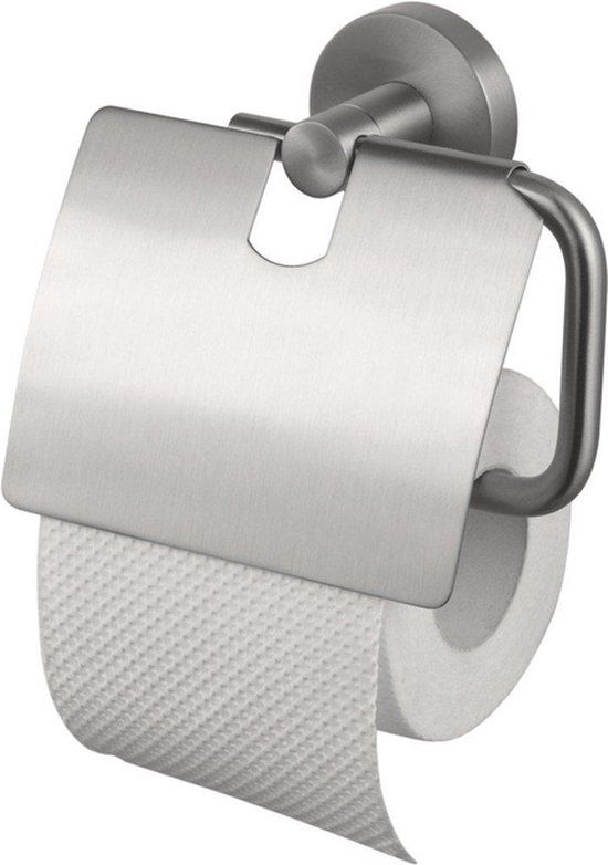 Haceka Kosmos Toiletrolhouder - met klep - mat RVS - Toiletpapierhouders