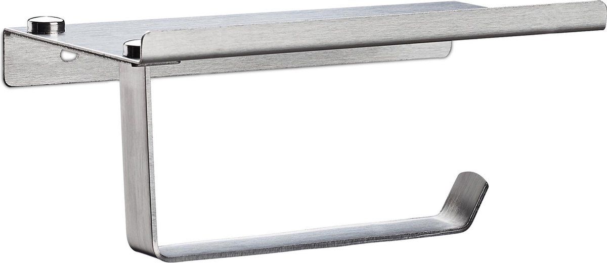 Relaxdays Toiletrolhouder met plankje - wc rol houder rvs mat - wandmontage - rolhouder