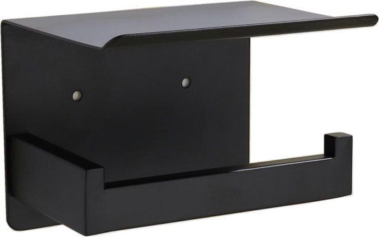 VDN Stainless Toiletrolhouder Zwart met Plankje - Zelfklevend - Toiletpapierhouders