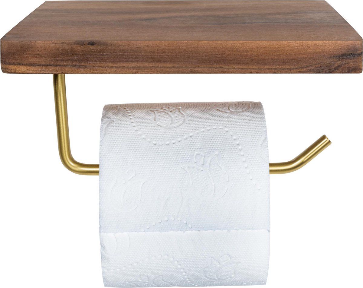 QUVIO Toiletrolhouder met houten telefoonplankje - 12 x 20 x 11 cm - Toiletpapierhouders