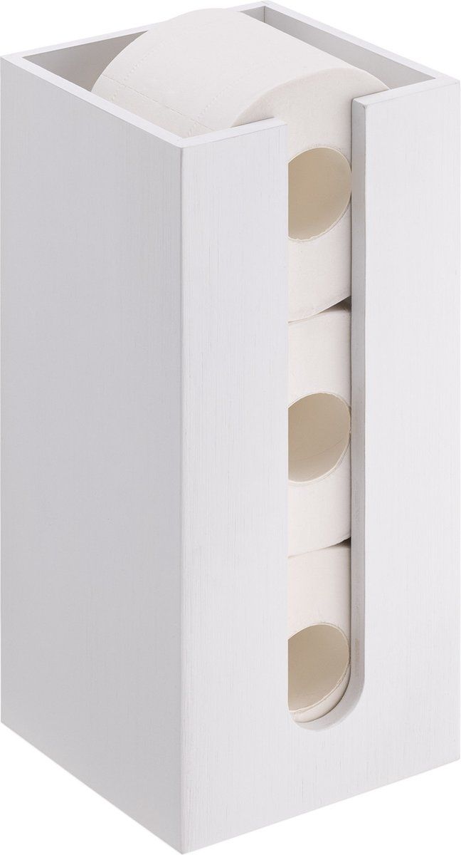 Navaris Witte bamboe Toiletrol Organizer - Vrijstaande Toiletpapierhouder - WC-papier Houder voor Badkamer - Houder voor 3 Toiletrollen - Toiletpapierhouders