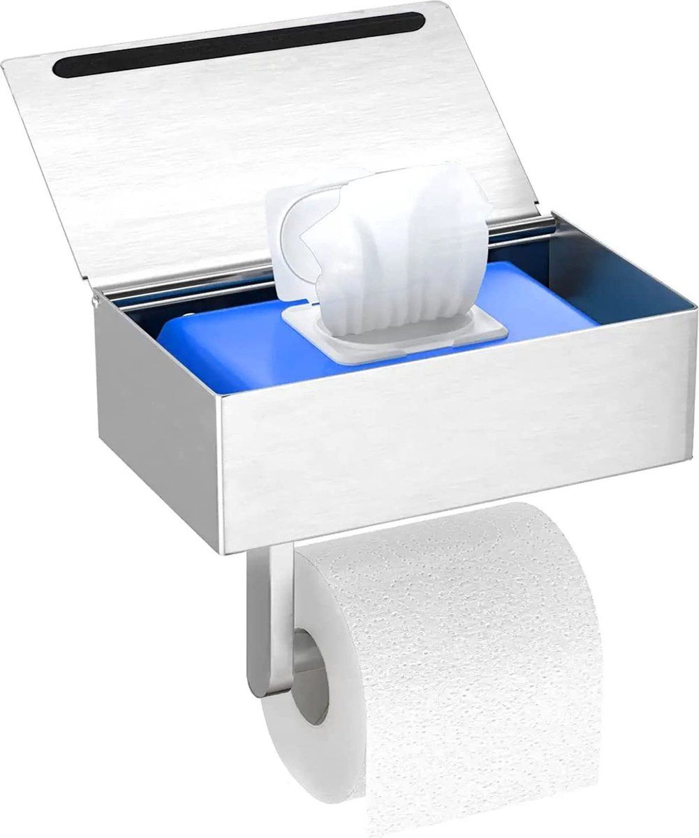 GUIGUZI Toiletrolhouder met Vochtige Doekjesbox - Zelfklevend - Zilver