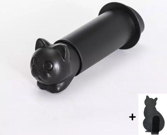 Unbranded WC Rolhouder - Toiletrolhouder - WC papier houder - Toiletpapier houder – Zwart – Kat – Poes – Zonder Boren – met katten haakje - Toiletpapierhouders