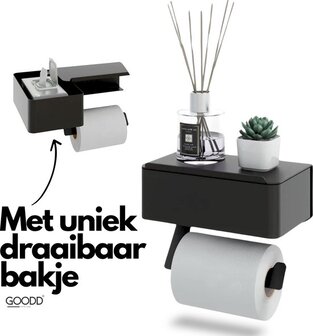 GOODD® Marseille Toiletrolhouder - Zwart - Met Bakje, Tissue Houder & Plankje - Zelfklevend of Schroeven - Toiletpapierhouders