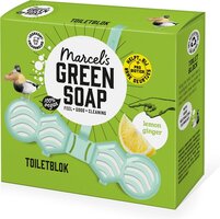 Maak het toiletbezoek een stuk aangenamer met Marcels Green Soap Toiletblok Citroen & Gember. Dit frisse en natuurlijke toiletblok is gemaakt van 99% natuurlijke ingrediënten en zorgt voor een heerlijke geur in uw toilet. Dankzij de anti-kalk werking wordt het toilet kalkvrij gehouden, het reinigende blok is ook geschikt voor een septic tank. Dankzij de houder van 100% gerecycled plastic is de belasting op met milieu minimaal.Marcels Green Soap Toiletblok Citroen & Gember:Gemaakt van 99% natuurlijke ingrediëntenFrisse geur van citroen en gemberHouder van 100% gerecycled plasticZorgt voor een aangename geur in uw toiletTot wel 200 spoelbeurtenHoe te gebruiken?1. Haal het toiletblok uit de verpakking en plaats het in de toiletpot2. Zorg ervoor dat het blok niet in direct contact komt met water3. Het blok zal langzaam oplossen en zorgen voor een frisse geur en schoon toilet4. Vervang het toiletblok wanneer deze volledig is opgelost.
