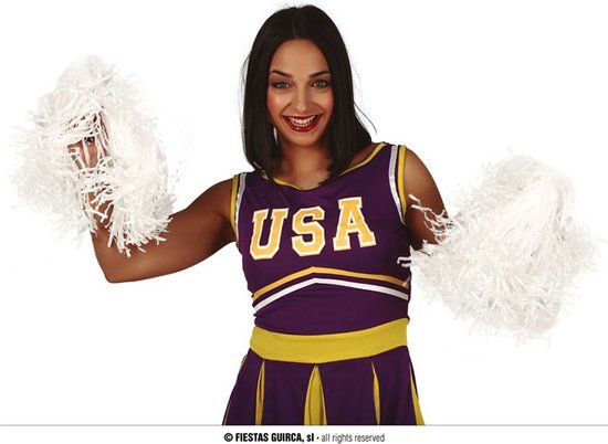 Pom-pom set wit (2 stuks) Deze set van 2 pom-poms is erg leuk om uw outfit van een cheerleader compleet te maken. De outfit is pas compleet met deze pom-poms.