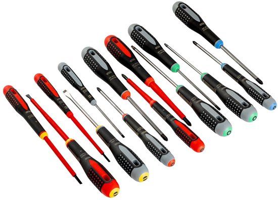 Deze 15- delige ERGO™ Schroevendraaierset van Bahco bestaat uit diverse schroevendraaiers, waarmee direct aan de slag kunt gaan. De set bestaat uit schroevendraaiers voor Gleuf, Phillips en Torx.