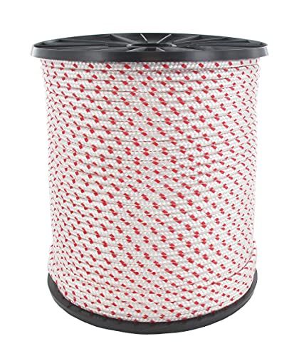 Polyamidetouw, wit, met rode biezen – L: 100 m Ø: 3,5 mm., Gewicht: 1.54103121138 Pond, Fabrikant: Greenstar