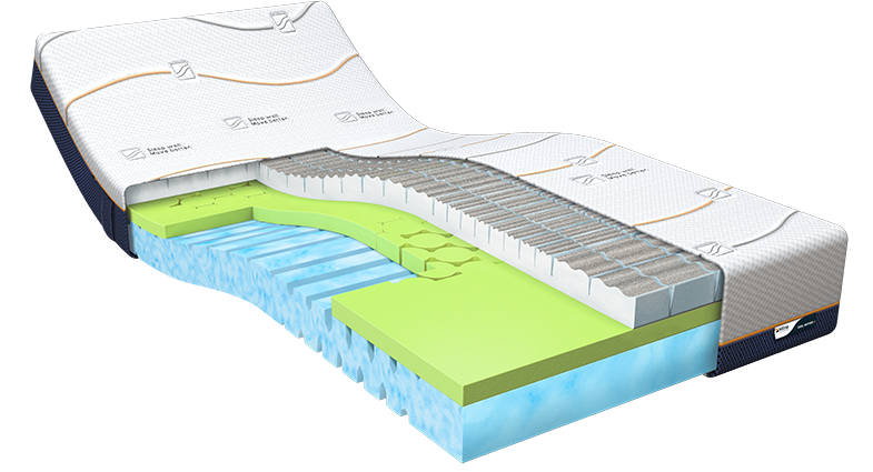Koudschuim matras met meerdere lagen traagschuim Naast de koudschuim basislaag, de toplaag van traagschuim en de gepatenteerde Dual Action tijk is de Cool Motion 4 voorzien van een extra comfortlaag en een unieke afwerking op de toplaag. Deze combinatie g